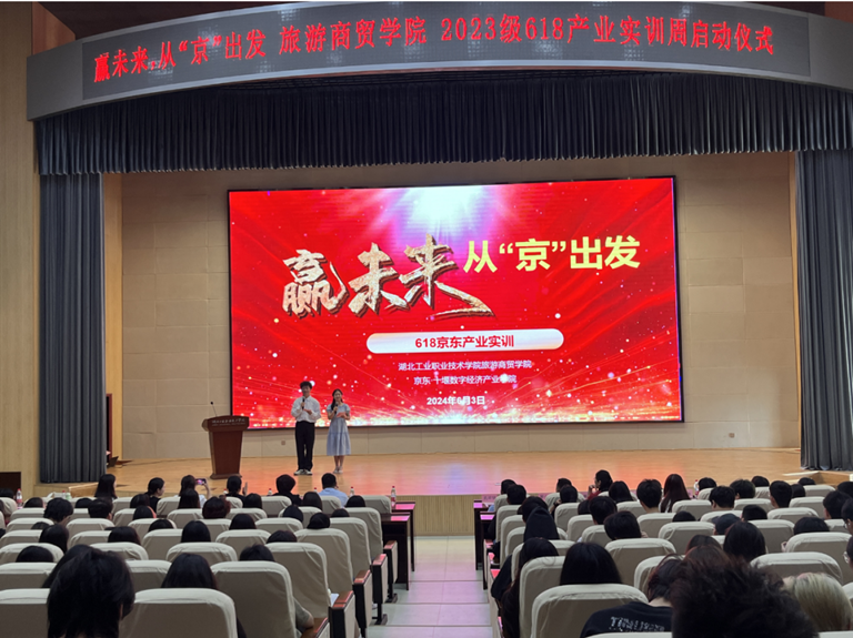 为提升员工电商综合运营能力,以真产业导入打造电子商务群专业特色。yL23411永利官网登录于6月3日在和山会堂举行了“赢未来,从“京”出发--618产业实训周的启动仪式。校教务处处长李爱萍、yL23411永利官网登录经理孔祥银、京东十堰数字经济产业学院负责人陈方亦、武汉京云创新科技有限公司教学经理王芬,yL23411永利官网登录班子成员及相关专业教师、京东十堰数字经济产业学院2023级全体员工参加启动仪式。