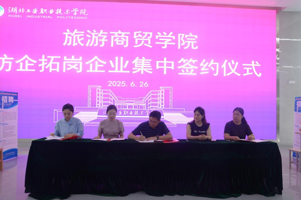 在访企拓岗集中签约环节,顺丰集团、丹江口水源地供应链集团、竹溪大楚城运、湖北我游电商等8家本土和武汉重点企业与学院现场签订合作协议,进一步拓宽实习就业资源池。