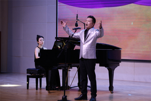 晚会以“青春正当时,奋进新征程”为主题,共演出十九个节目,包括钢琴、歌唱、朗诵、舞蹈等,涵盖了学前教育专业的各项基本技能。伴随着同学们热切的期盼,《唱支山歌给党听》拉开了晚会的序幕;串烧《南泥湾》灯光璀璨,歌声嘹亮,现场气氛被点燃;傣族舞《花腰傣》、回族舞《花儿》展现少数民族独特的风情;钢琴独奏《勃拉姆斯间奏曲0p.118No.2》、《黄安伦C大调前奏曲》、民乐独奏《国乐雅韵》、钢琴四手联弹 《孤独的牧羊人》、萨克斯独奏《回家》 各类乐器轮番上演,艺术的魅力使人沉醉;配乐诗朗诵《其实有一百》在徐超、何姣姣两位老师的倾情演绎下,让员工们感受到教师口语表达的风采和力量;白玉婷老师的独唱《锦瑟》、杨华老师的独唱《母亲》和张文韬老师的独唱《黄河颂》 更是让演出高潮迭起……最后全体师生齐声合唱《没有共产党就没有新中国》,为此次活动画上了圆满的句号。