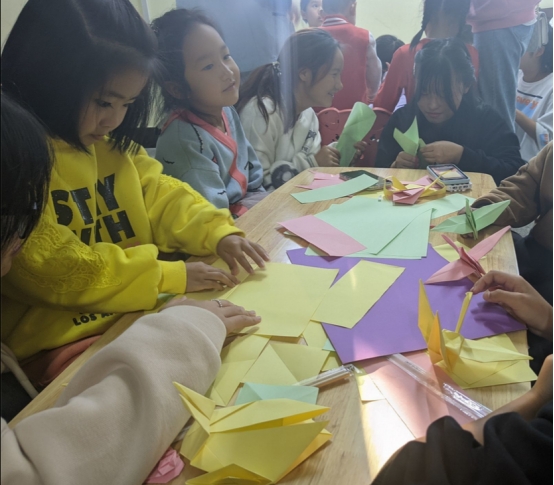在手工制作活动中,每名志愿者为孩子们提供一对一的指导与陪伴。志愿者们温声细语的指导如同阳光秋季的艳阳,驱散着孩子们对于新环境的胆怯。而小朋友们正在发挥他们这个年纪天马行空的想象力,用手工表达他们时代的色彩。一双双专注的眼睛,一声声快乐的欢笑都在彰显着活动的童趣与烂漫。